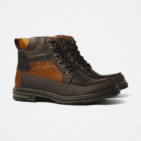 Estilo: Robusto, Moc Toe clássica com costura na parte da frente, e peças modernas.
